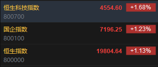 快讯:恒指高开1.13% 科指涨1.68% 科网股、汽车股齐涨