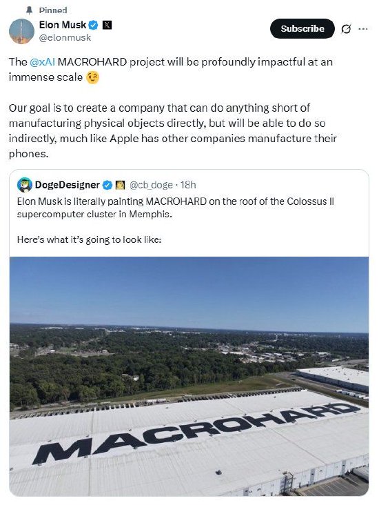 亿万富翁埃隆·马斯克公布了“巨硬”(MACROHARD)项目的最新进展。