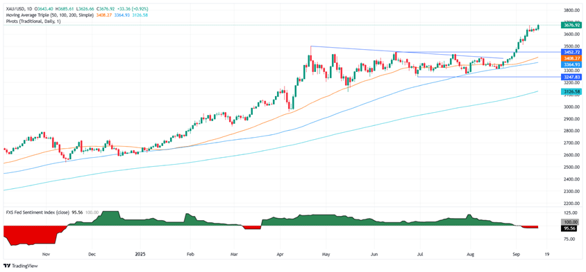 FXStreet分析师Christian Borjon Valencia撰文称,金价周一突破此前的纪录高位3674美元/盎司,并创下新的历史高位,金价近期有望挑战3700美元/盎司水平。在美国国债收益率下跌和美元接近一周低点的支撑下,金价反弹至历史新高。