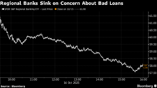 又一份显示人工智能需求前景稳健的展望发布之后,标普500指数日内早些时候一度走高,之后随着两家地区性银行披露涉及欺诈指控的贷款问题,让市场越发担心借款人信用状况正在出现更多问题,该指数转跌。